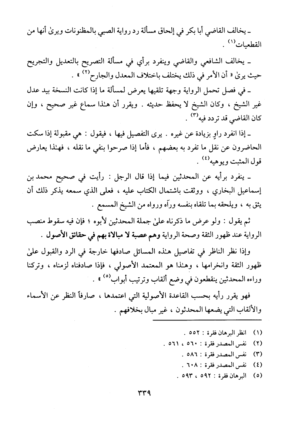 - يخالف القاضي أبا بكر في إلحاق مسألة رد رواية الصبي بالمظنونات ويرى أنها من القطعيات (¬1).