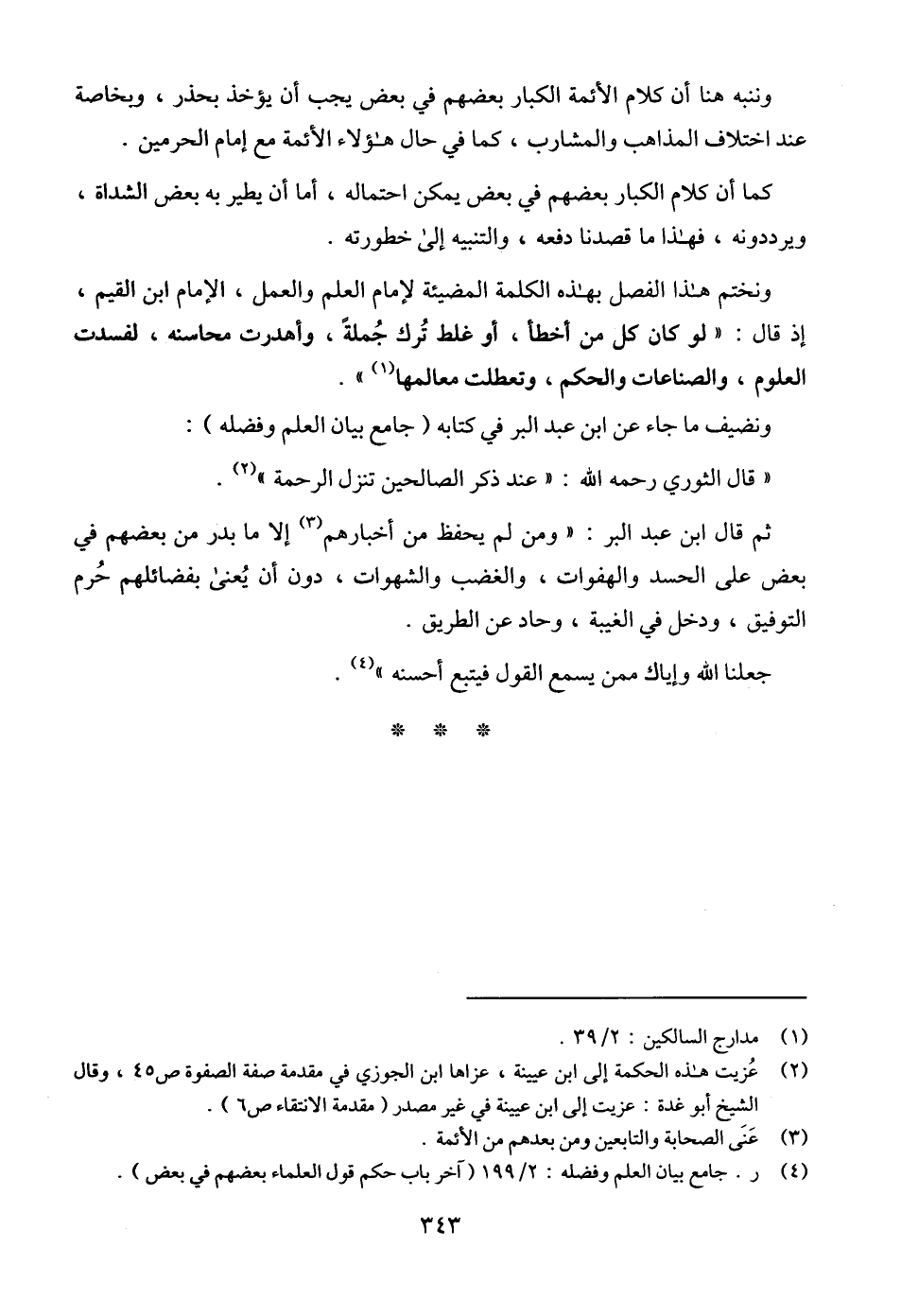 (¬4) ر. جامع بيان العلم وفضله: 2/ 199 (آخر باب حكم قول العلماء بعضهم في بعض).
