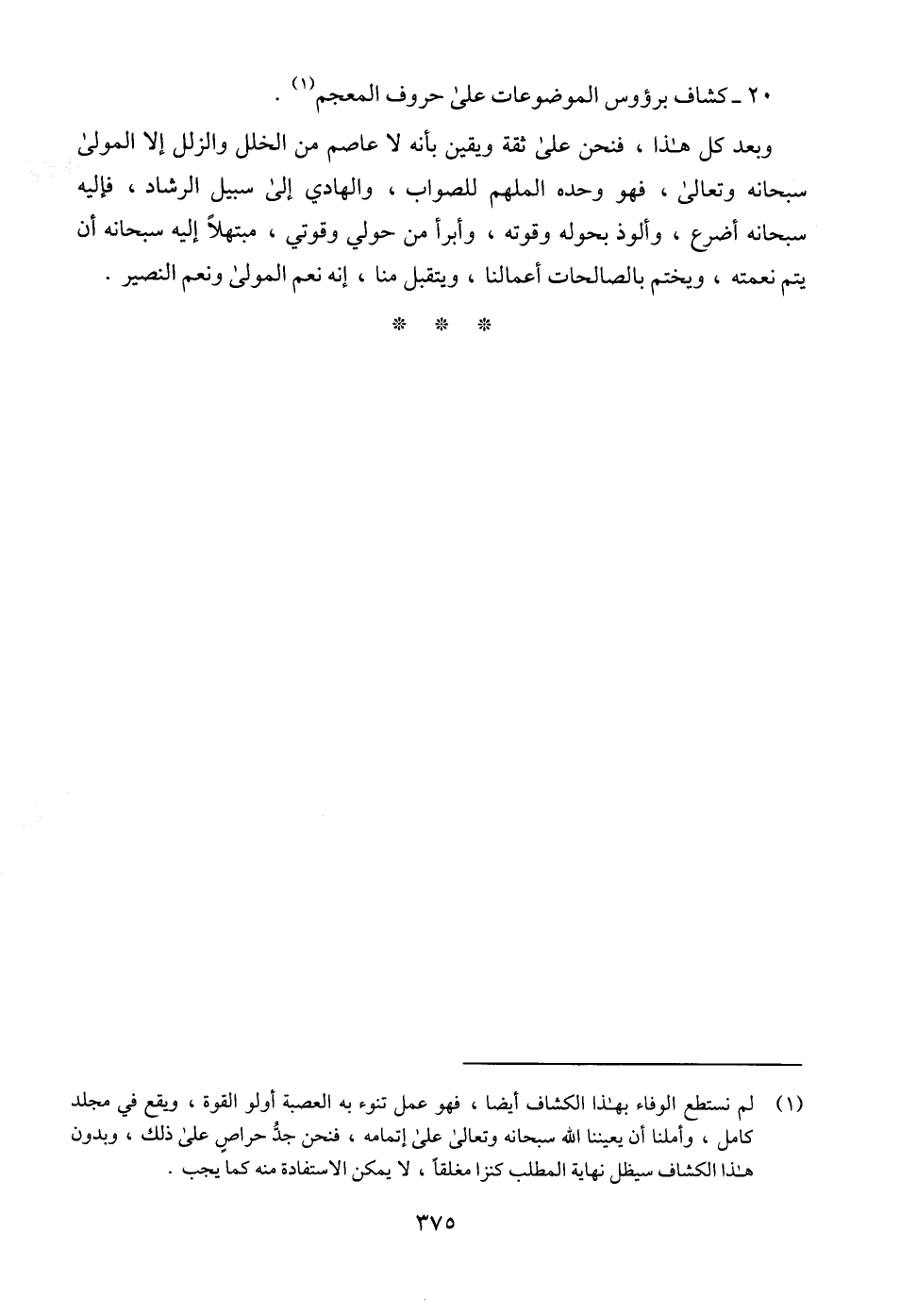 20 - كشاف برؤوس الموضوعات على حروف المعجم (¬1).