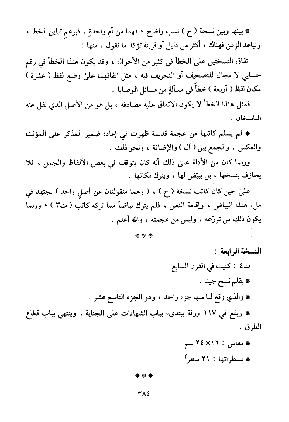 اتفاق النسختين على الخطأ في كثير من الأحوال، وقد يكون هذا الخطأ في رقم حسابي لا مجال للتصحيف أو التحريف فيه، مثل اتفاقهما على وضع لفظ (عشرة) مكان لفظ (أربعة) خطأّ في مسألةٍ من مسائل الوصايا.