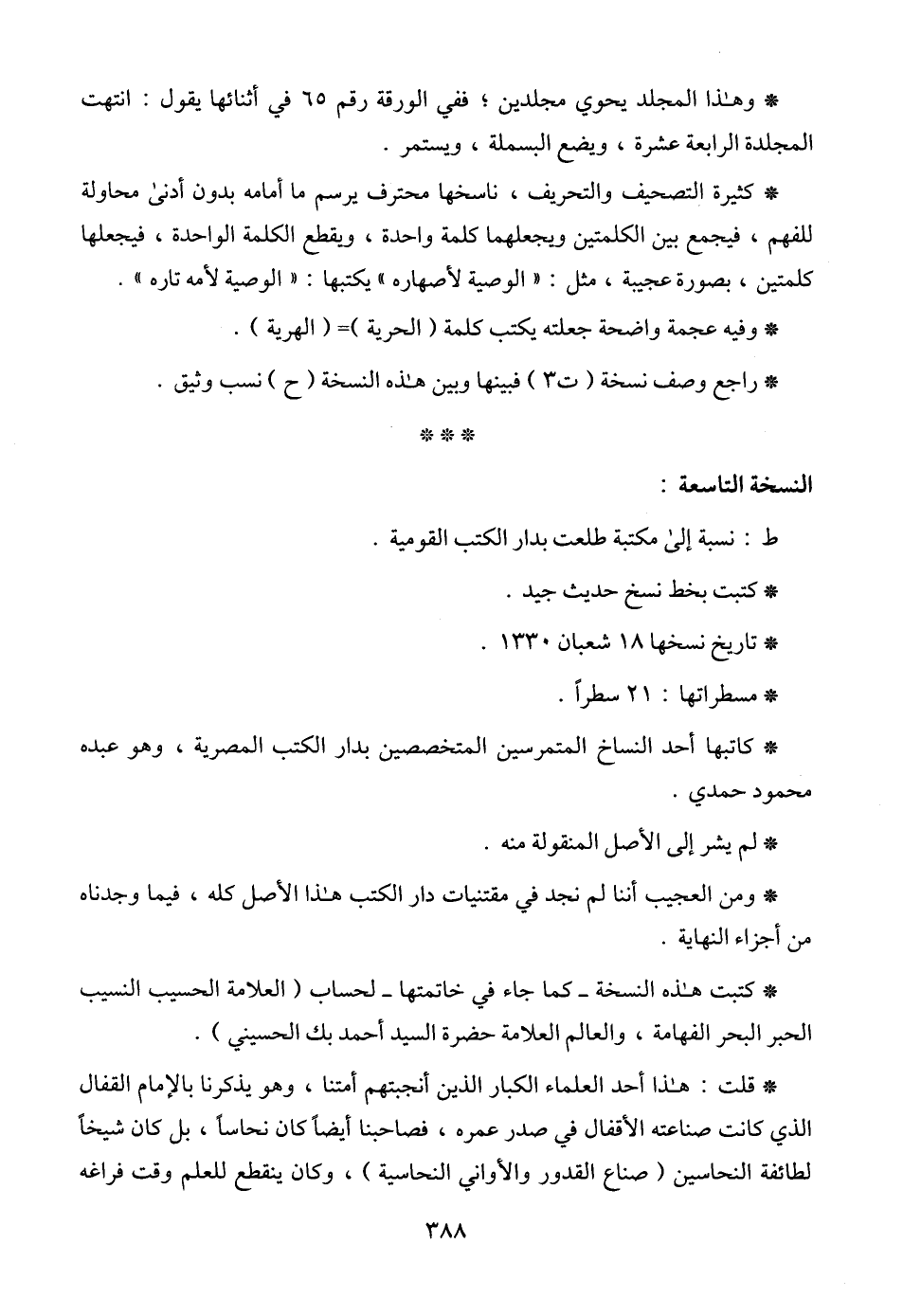 * ومن العجيب أننا لم نجد في مقتنيات دار الكتب هذا الأصل كله، فيما وجدناه من أجزاء النهاية.