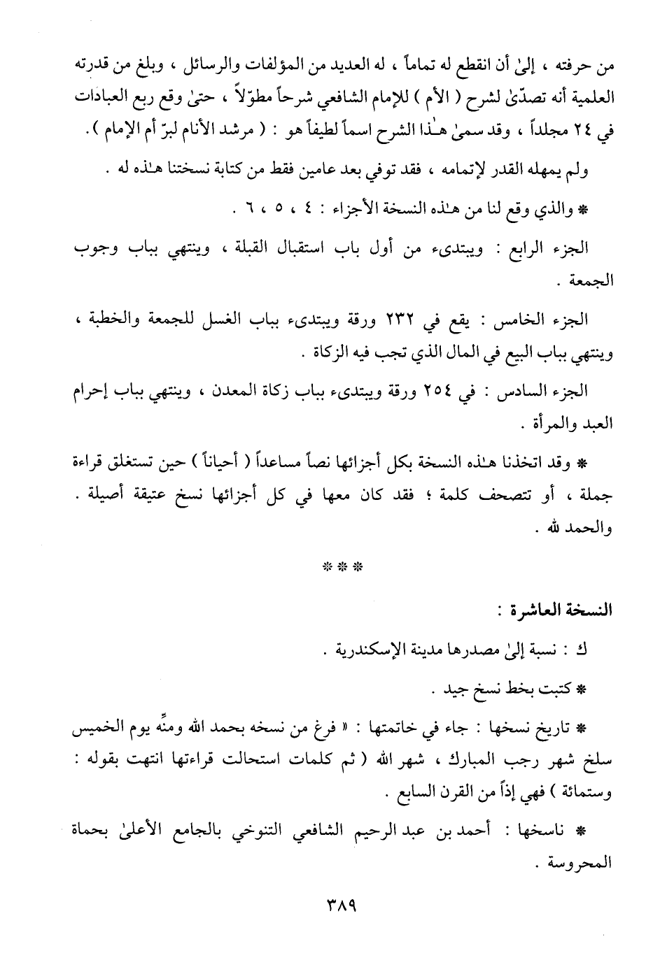 * وقد اتخذنا هذه النسخة بكل أجزائها نصاً مساعداً (أحياناً) حين تستغلق قراءة جملة، أو تتصحف كلمة؛ فقد كان معها في كل أجزائها نسخ عتيقة أصيلة.