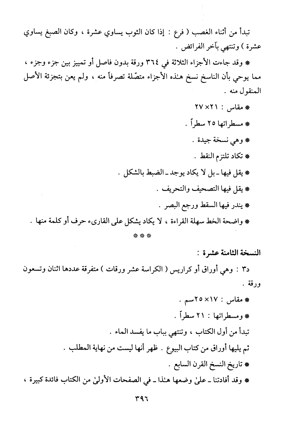 * وقد جاءت الأجزاء الثلاثة في 364 ورقة بدون فاصل أو تمييز بين جزء وجزء، مما يوحي بأن الناسخ نسخ هذه الأجزاء متصّلة تصرفاً منه، ولم يعن بتجزئة الأصل المنقول منه.