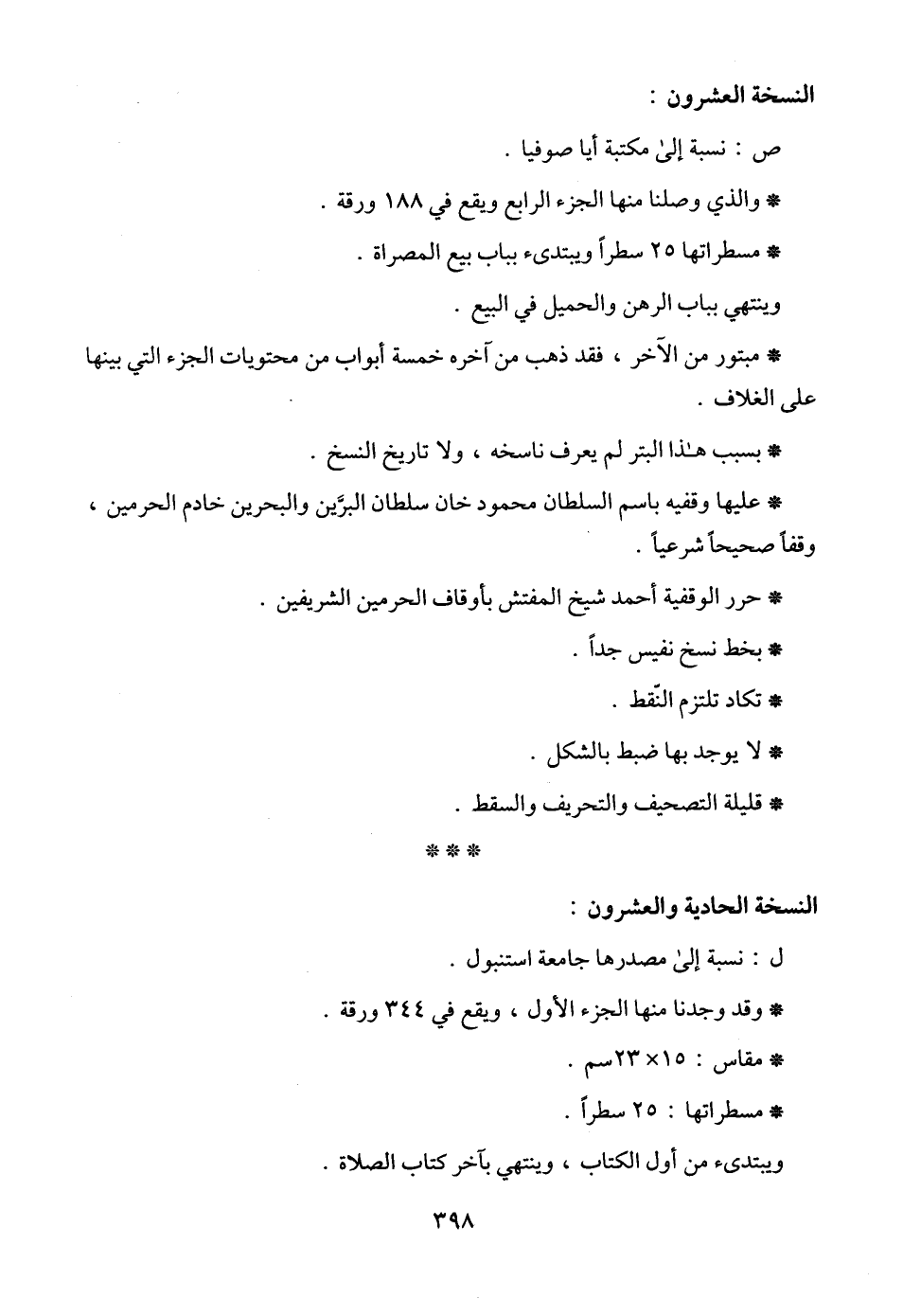 * مسطراتها 25 سطراً ويبتدىء بباب بيع المصراة.