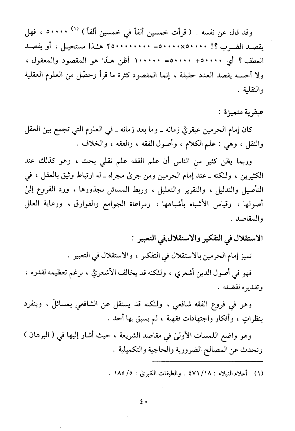 وقد قال عن نفسه: (قرأت خمسين ألفاً في خمسين ألفاً) (¬1) 50000، فهل يقصد الضرب؟! 50000 × 50000= 2500000000 هذا مستحيل، أو يقصد العطف؟ أي 50000 + 50000= 100000 أظن هذا هو المقصود والمعقول، ولا أحسبه يقصد العدد حقيقة، إنما المقصود كثرة ما قرأ وحصّل من العلوم العقلية والنقلية.