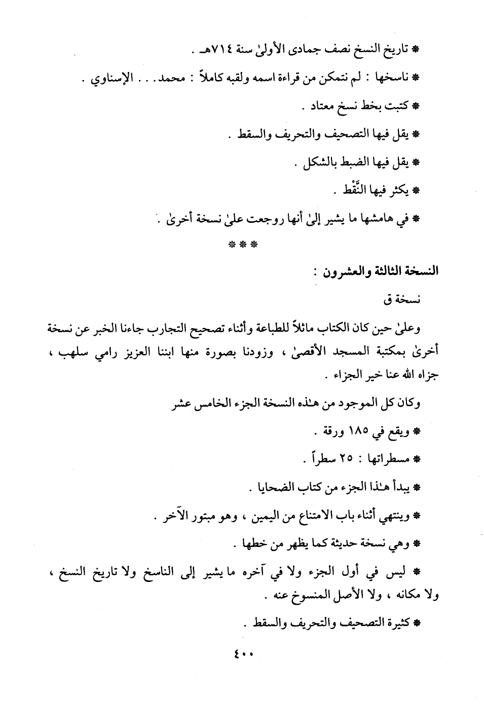 * ليس في أول الجزء ولا في آخره ما يشير إلى الناسخ ولا تاريخ النسخ، ولا مكانه، ولا الأصل المنسوخ عنه.