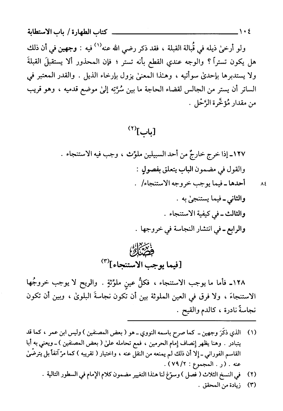 (¬2) في النسخ الثلاث (فصل) وسوغ لنا هذا التغيير مضمون كلام الإِمام في السطور التالية.