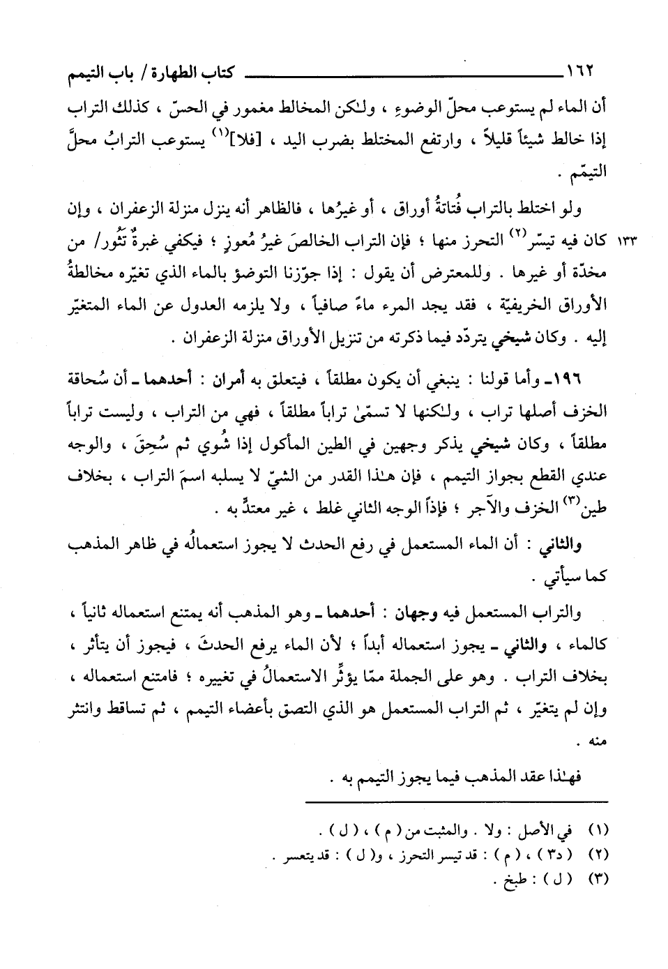 196 - وأما قولنا: ينبغي أن يكون مطلقاًً، فيتعلق به أمران: أحدهما - أن سُحاقة الخزف أصلها تراب، ولكنها لا تسمى تراباً مطلقاًً، فهي من التراب، وليست تراباً مطلقاًً، وكان شيخي يذكر وجهين في الطين المأكول إذا شُوي ثم سُحِقَ، والوجه عندي القطع بجواز التيمم، فإن هذا القدر من الشيّ لا يسلبه اسمَ التراب، بخلاف طين (¬3) الخزف والآجر؛ فإذاً الوجه الثاني غلط، غير معتدٍّ به.