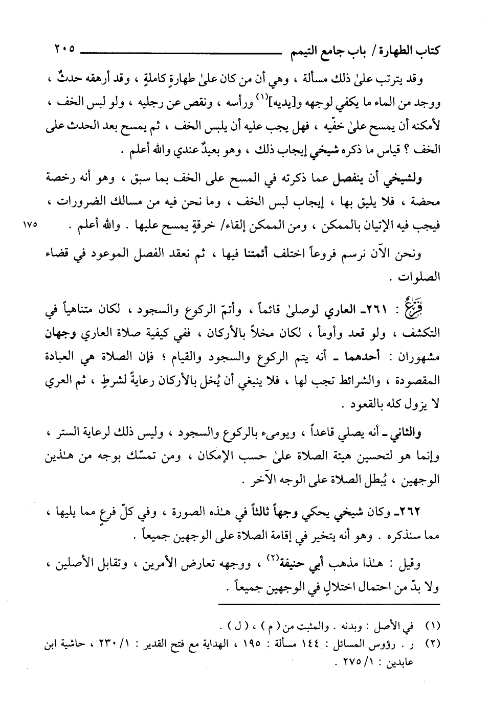 (¬2) ر. رؤوس المسائل: 144 مسألة: 195، الهداية مع فتح القدير: 1/ 230، حاشية ابن عابدين: 1/ 275.