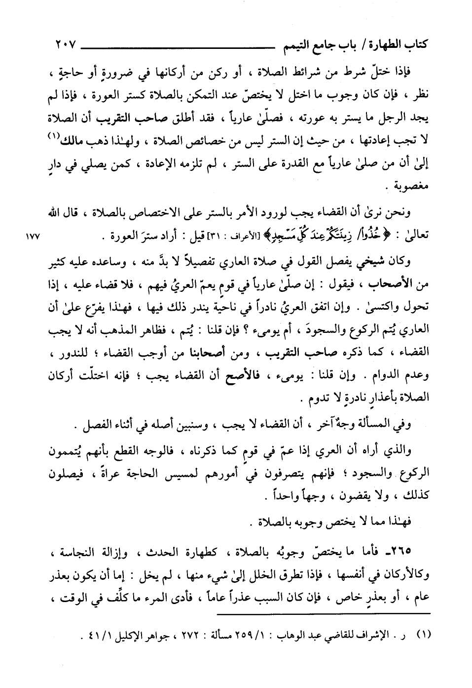 (¬1) ر. الإشراف للقاضي عبد الوهاب: 1/ 259 مسألة: 272، جواهر الإكليل 1/ 41.