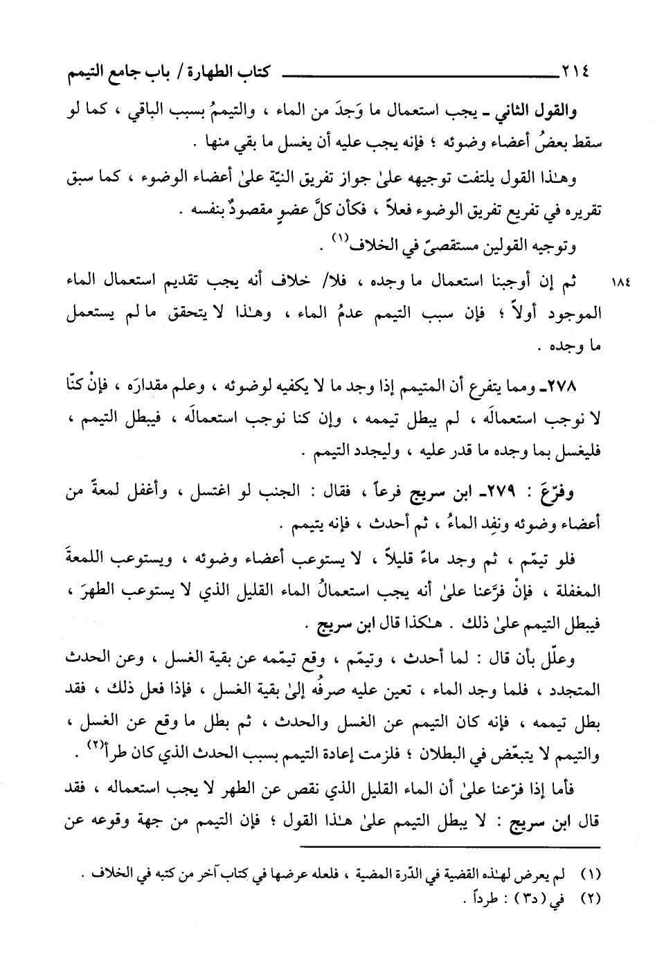 279 - ابن سريج فرعاً، فقال: الجنب لو اغتسل، وأغفل لمعةً من أعضاء وضوئه ونفِد الماءُ، ثم أحدث، فإنه يتيمم.