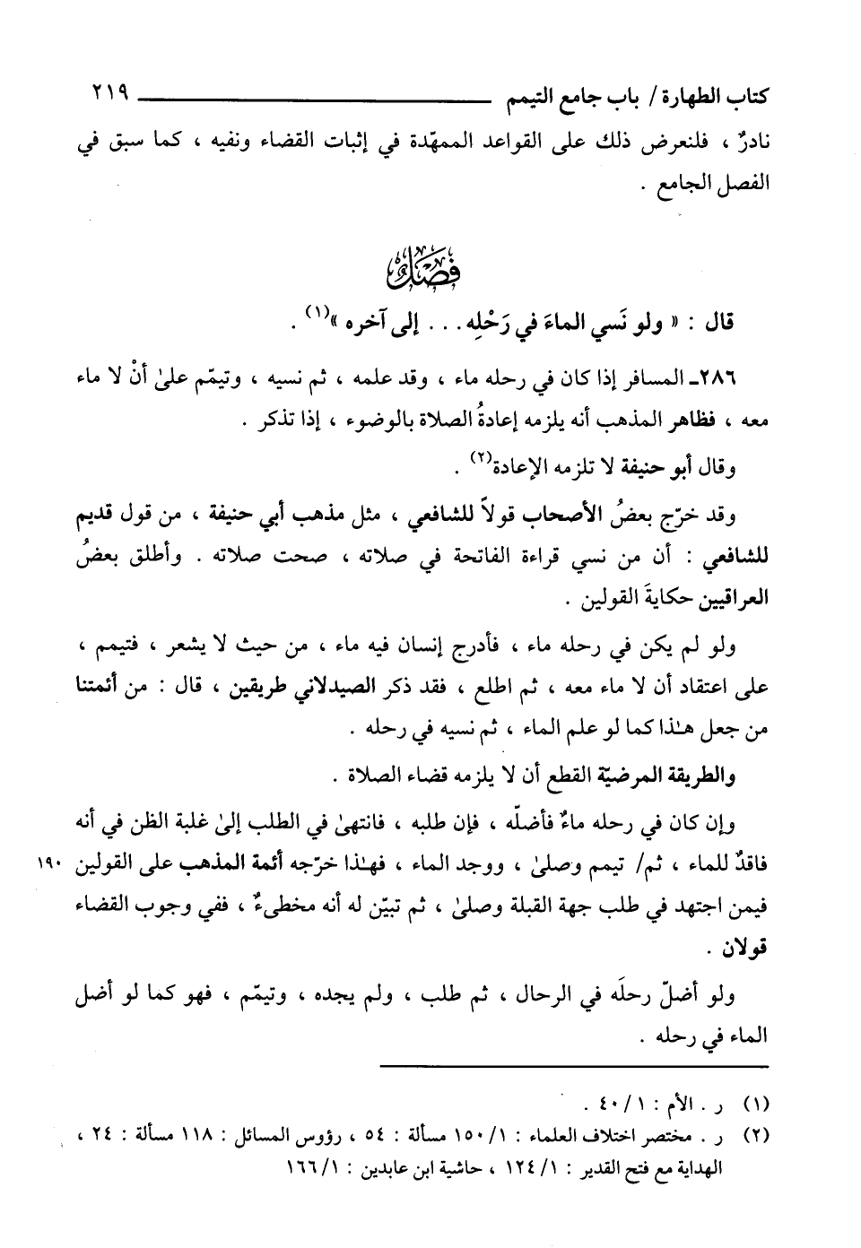 (¬2) ر. مختصر اختلاف العلماء: 1/ 150 مسألة: 54، رؤوس المسائل: 118 مسألة: 24، الهداية مع فتح القدير: 1/ 124، حاشية ابن عابدين: 1/ 166.