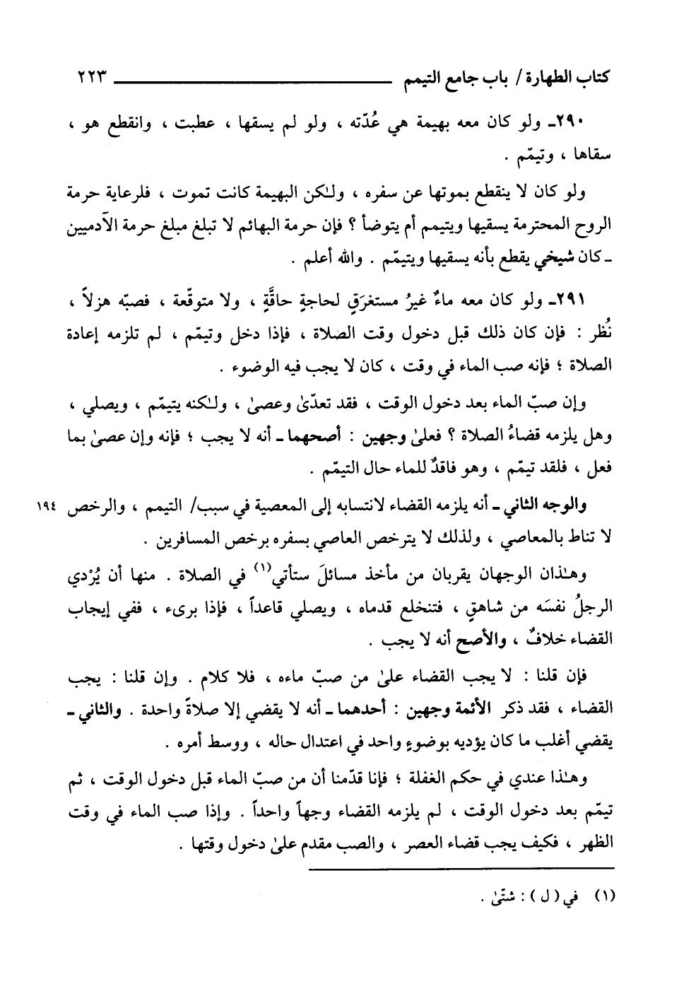 290 - ولو كان معه بهيمة هي عُدّته، ولو لم يسقها، عطبت، وانقطع هو، سقاها، وتيمّم.