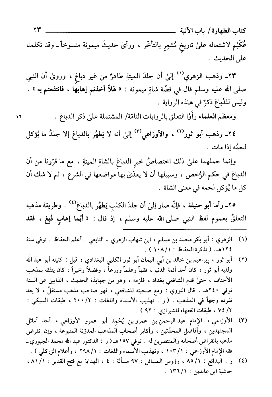 24 - وذهب أبو ثور (¬2)، والأوزاعي (¬3) إلى أنه لا يَطهُر بالدباغ إلا جلدُ ما يُؤكل لحمُه إذا مات.
