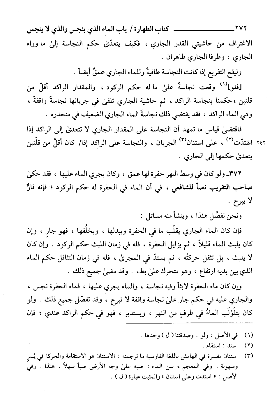 (¬3) استنان مفسرة في الهامش باللغة الفارسية ما ترجمته: الاستنان هو الاستقامة والحركة في يُسرٍ وسهولة. وفي المعجم، سن الماء: صبه على وجه الأرض صباً سهلاً. هذا. وفي الأصل: " استدت وعلى استنان " والمثبت عبارة (ل).