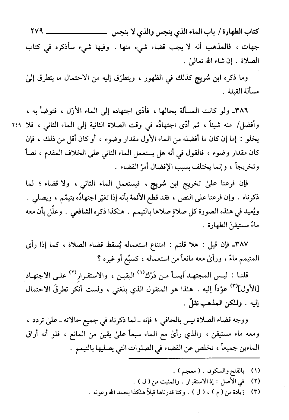 386 - ولو كانت المسألة بحالها، فأدّى اجتهاده إلى الماء الأوّل، فتوضأ به، وأفضل منه شيئاًً، ثم أدّى اجتهادُه في وقت الصلاة الثانية إلى الماء الثاني، فلا يخلو: إما إن كان ما أفضله من الماء الأول مقدار وضوء، أو كان أقل من ذلك، فإن كان مقدار وضوء، فالقول في أنه هل يستعمل الماء الثاني على الخلاف المقدم، نصاً وتخريجاً، وإنما يختلف بسبب الإفضال أمرُ القضاء.