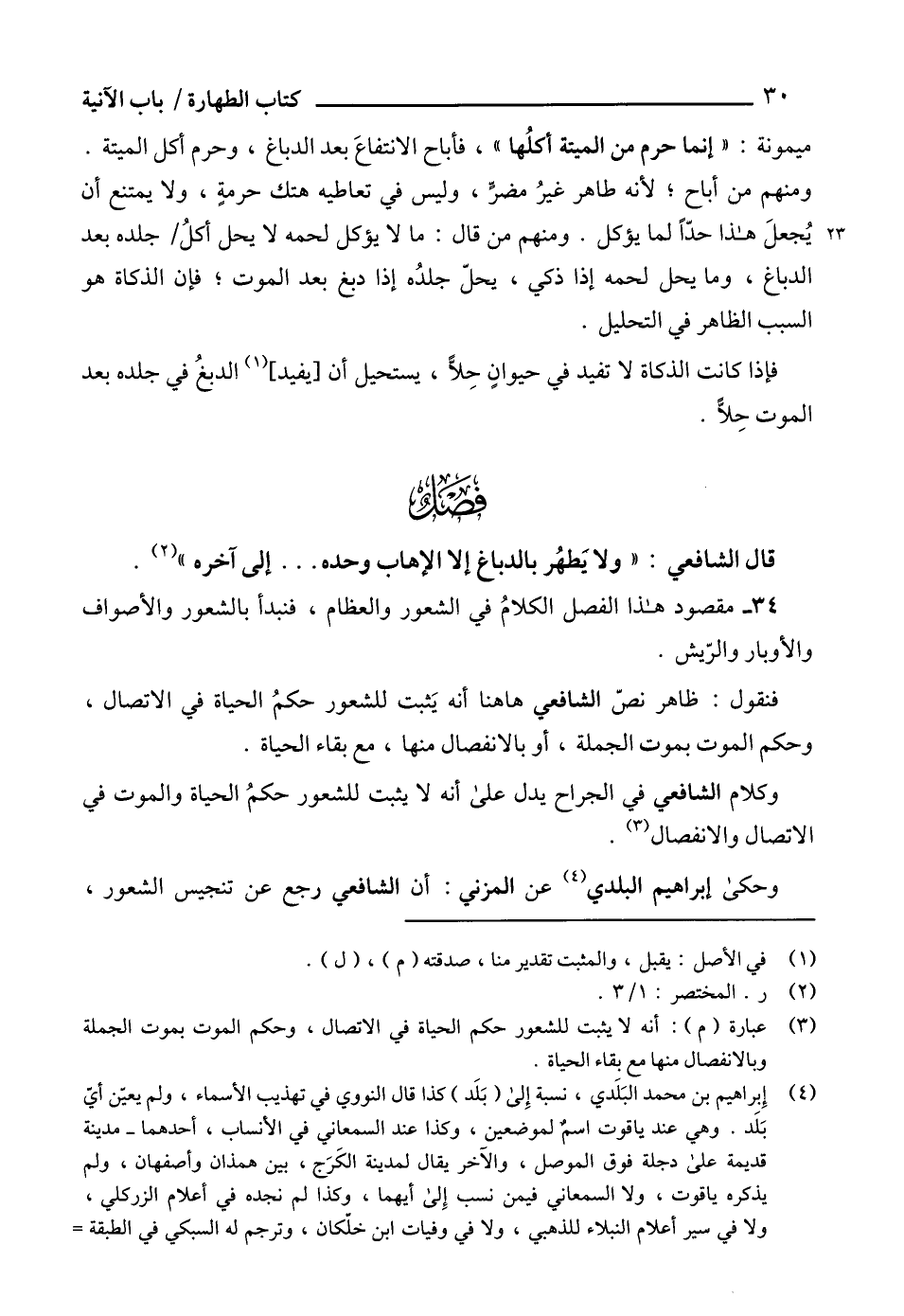 34 - مقصود هذا الفصل الكلامُ في الشعور والعظام، فنبدأ بالشعور والأصواف والأوبار والرّيش.