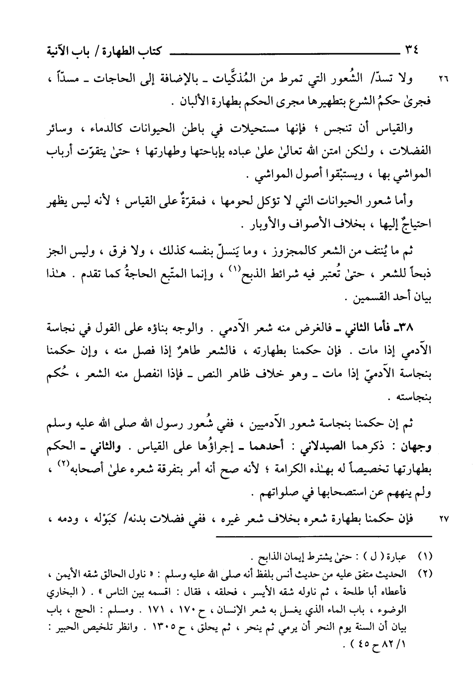 ولا تسدّ الشُعور التي تمرط من المُذكَّيات -بالإضافة إلى الحاجات- مسدّاً، فجرى حكمُ الشرع بتطهيرها مجرى الحكم بطهارة الألبان.