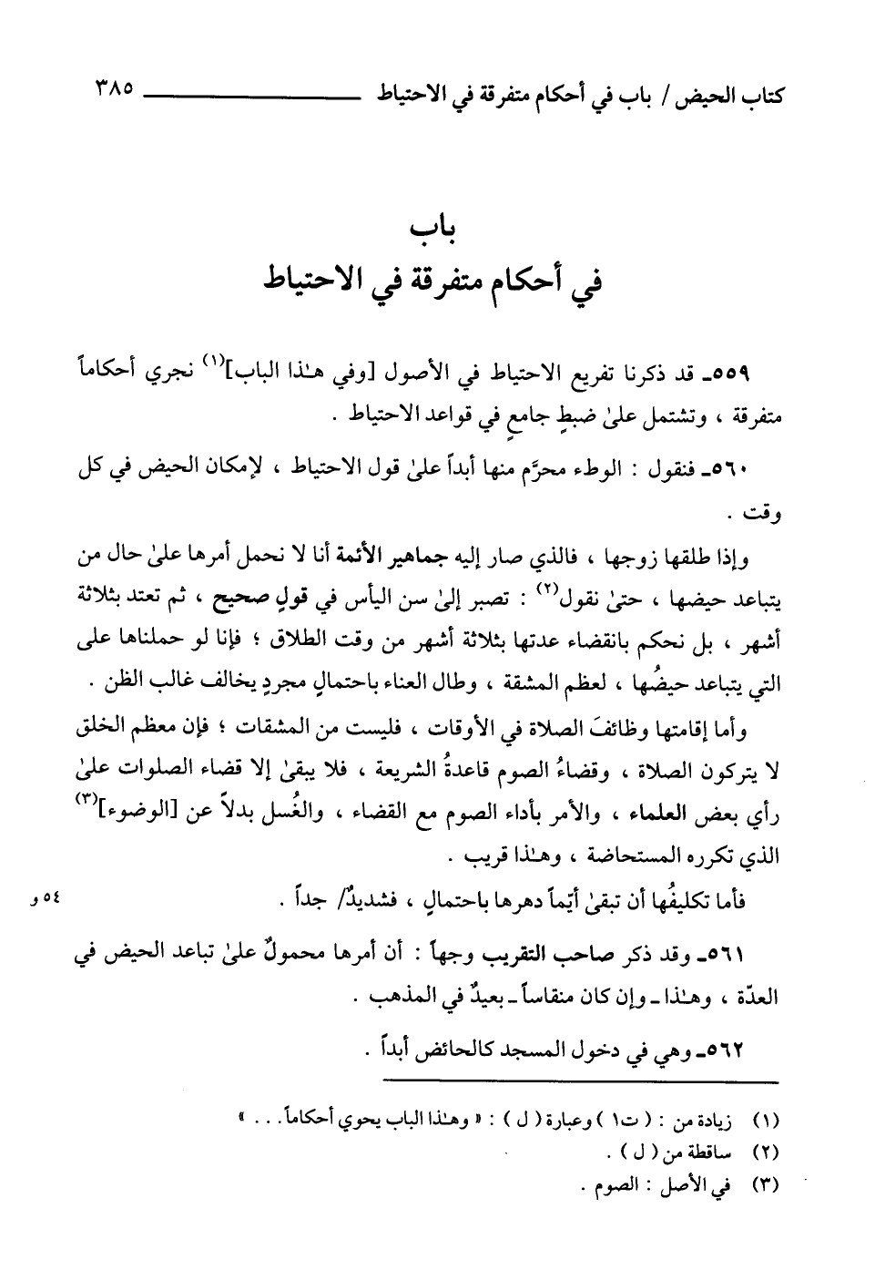 560 - فنقول: الوطء محرَّم منها أبداً على قول الاحتياط، لإمكان الحيض في كل وقت.