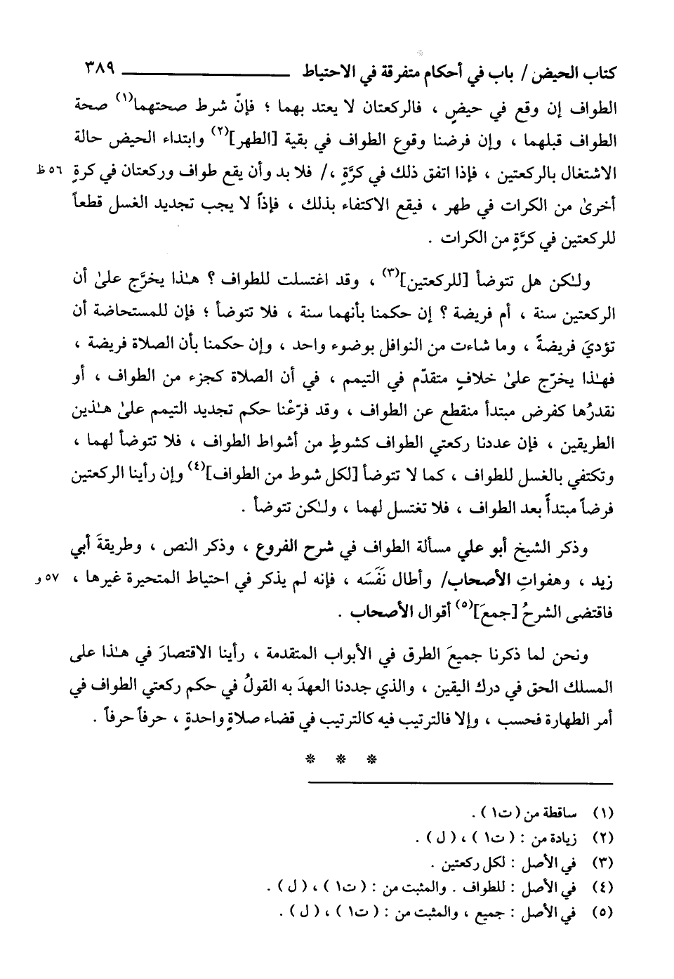 وذكر الشيخ أبو علي مسألة الطواف في شرح الفروع، وذكر النص، وطريقةَ أبي زيد، وهفواتِ الأصحاب وأطال نَفَسَه، فإنه لم يذكر في احتياط المتحيرة غيرها، فاقتضى الشرحُ [جمعَ] (¬5) أقوال الأصحاب.