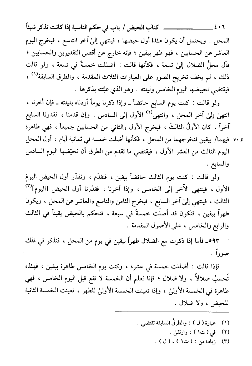 593 - فأما إذا ذكرت مع الضلال طهراً بيقين في يوم من المحل، فنذكر في ذلك صوراً.