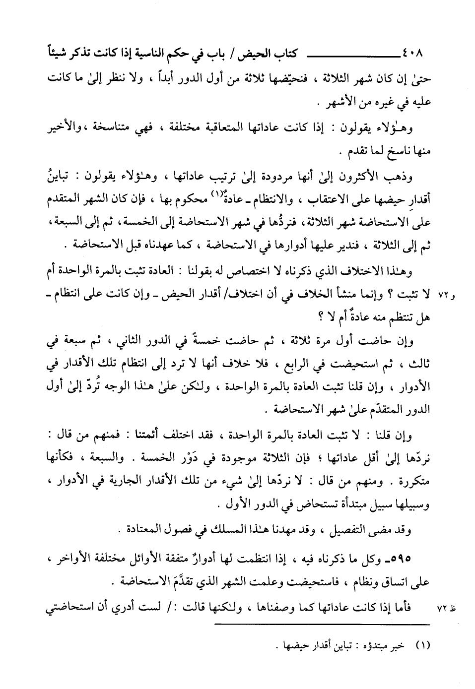 وهؤلاء يقولون: إذا كانت عاداتها المتعاقبة مختلفة، فهي متناسخة، والأخير منها ناسخ لما تقدم.