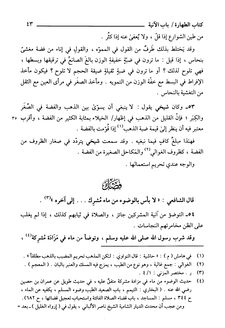 فهذا مبلغٌ كافٍ فيما نبغيه. وقد سمعت شيخي يتردّد في صغار الظروف من الفضة، كظروف الغوالي (¬2) والمَكاحل الصغيرة من الفضة.