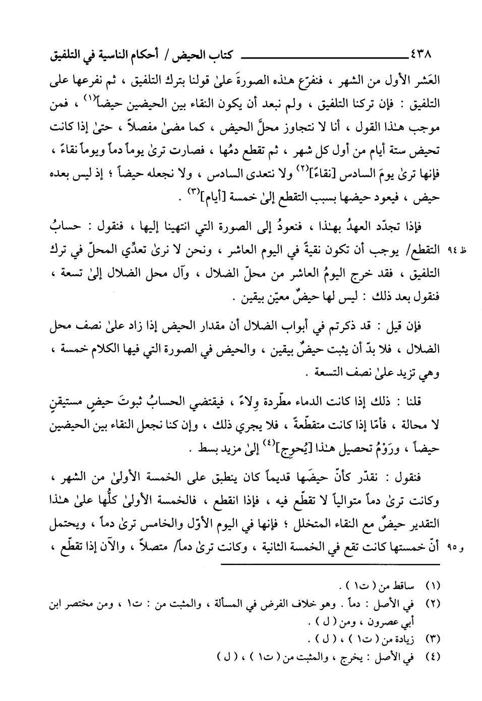 فإذا تجدّد العهدُ بهذا، فنعودُ إلى الصورة التي انتهينا إليها، فنقول: حسابُ التقطع يوجب أن تكون نقيةً في اليوم العاشر، ونحن لا نرى تعدِّي المحلّ في ترك التلفيق، فقد خرج اليومُ العاشر من محلّ الضلال، وآل محل الضلال إلى تسعة، فنقول بعد ذلك: ليس لها حيضٌ معيّن بيقين.
