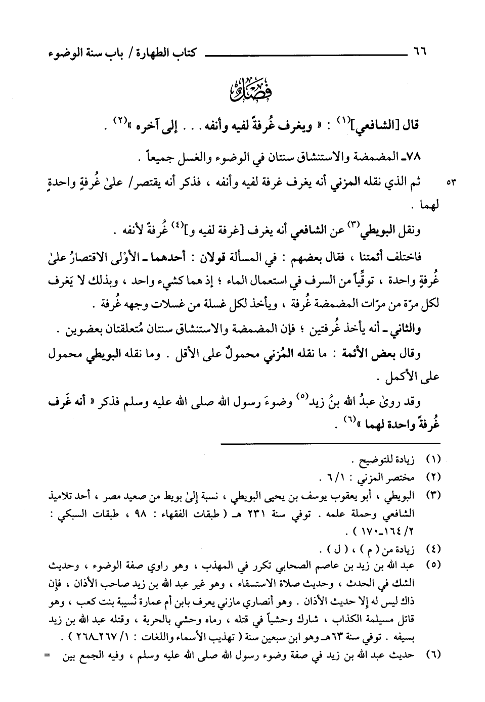 (¬5) عبد الله بن زيد بن عاصم الصحابي تكرر في المهذب، وهو راوي صفة الوضوء، وحديث الشك في الحدث، وحديث صلاة الاستسقاء، وهو غير عبد الله بن زيد صاحب الأذان، فإِن ذاك ليس له إِلا حديث الأذان. وهو أنصاري مازني يعرف بابن أم عمارة نُسيبة بنت كعب، وهو قاتل مسيلمة الكذاب، شارك وحشياً في قتله، رماه وحشي بالحربة، وقتله عبد الله بن زيد بسيفه. توفي سنة 63 هـ وهو ابن سبعين سنة (تهذيب الأسماء واللغات: 1/ 267 - 26).