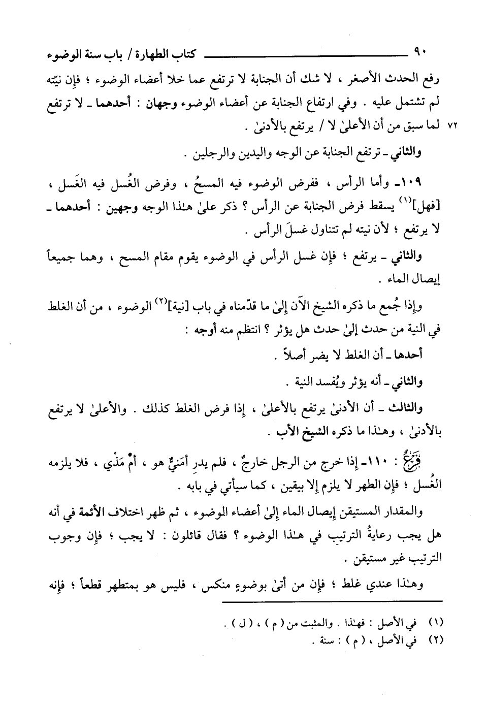 وهذا عندي غلط؛ فإِن من أتى بوضوءٍ منكس، فليس هو بمتطهر قطعاًً؛ فإِنه