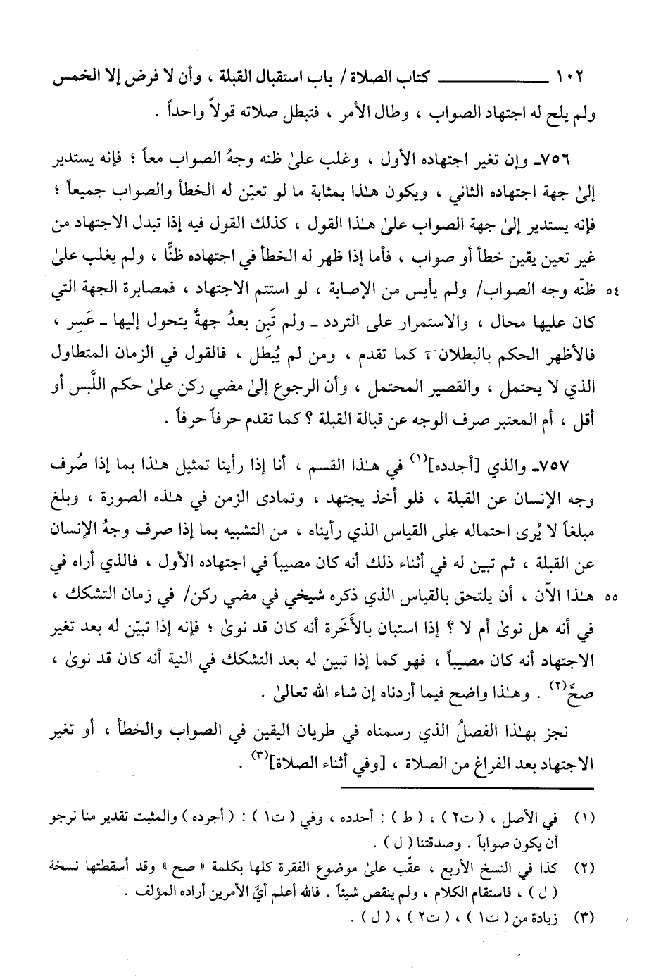 نجز بهذا الفصلُ الذي رسمناه في طريان اليقين في الصواب والخطأ، أو تغير الاجتهاد بعد الفراغ من الصلاة، [وفي أثناء الصلاة] (¬3).