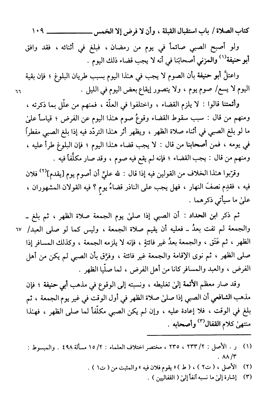وقد صار معظم الأئمة إلى تغليطه، ونسبته إلى الوقوع في مذهب أبي حنيفة؛ فإن مذهب الشافعي أن الصبي إذا صلى صلاة الظهر في أول الوقت في غير يوم الجمعة، ثم بلغ في الوقت، فلا إعادة عليه، وإن لم يكن الصبي مكلفاً لما صلى الظهر، فهذا منتهى كلام القفال (¬3) وأصحابه.