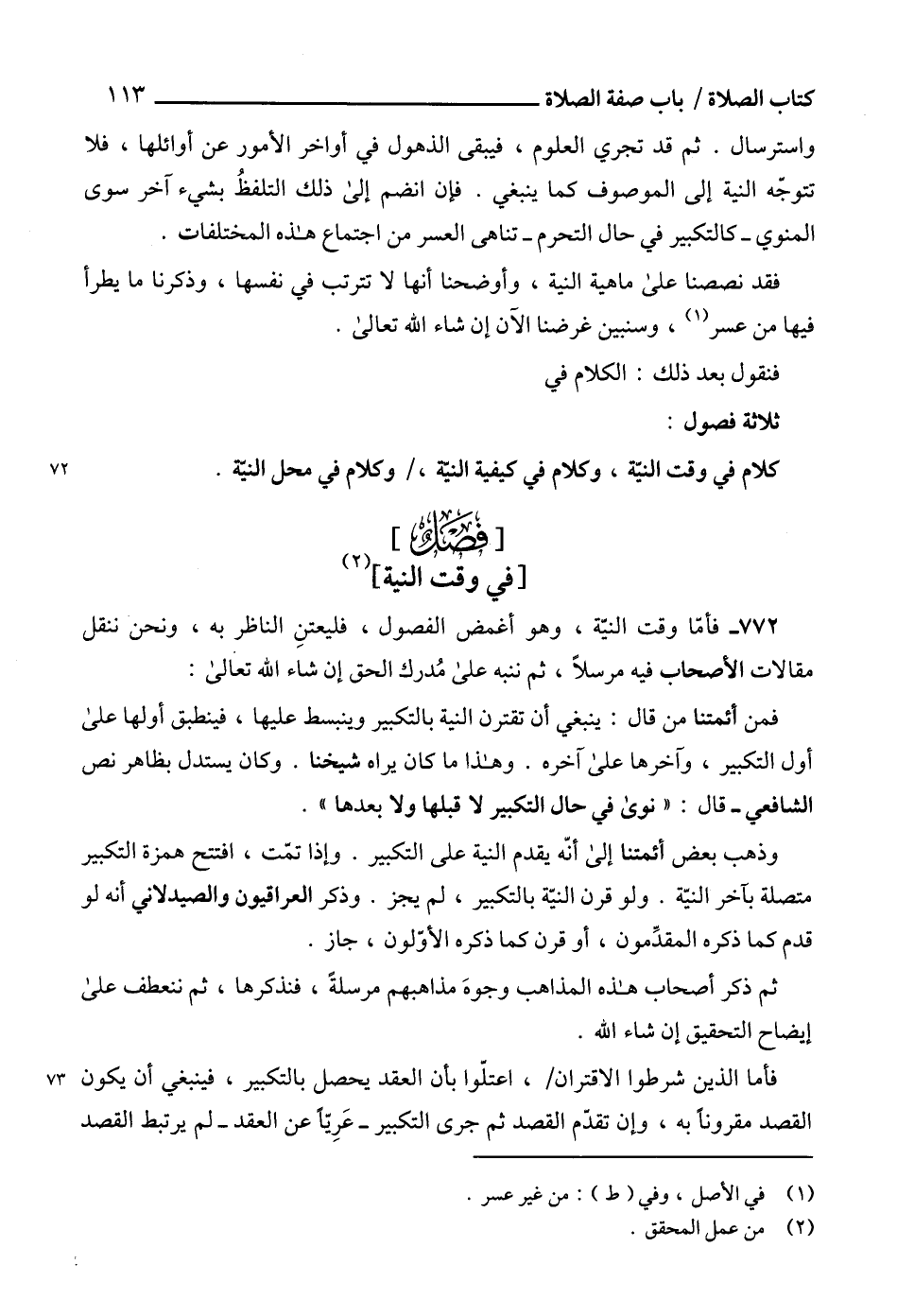772 - فأفا وقت النية، وهو أغمض الفصول، فليعتنِ الناظر به، ونحن ننقل مقالات الأصحاب فيه مرسلاً، ثم ننبه على مُدرك الحق إن شاء الله تعالى: