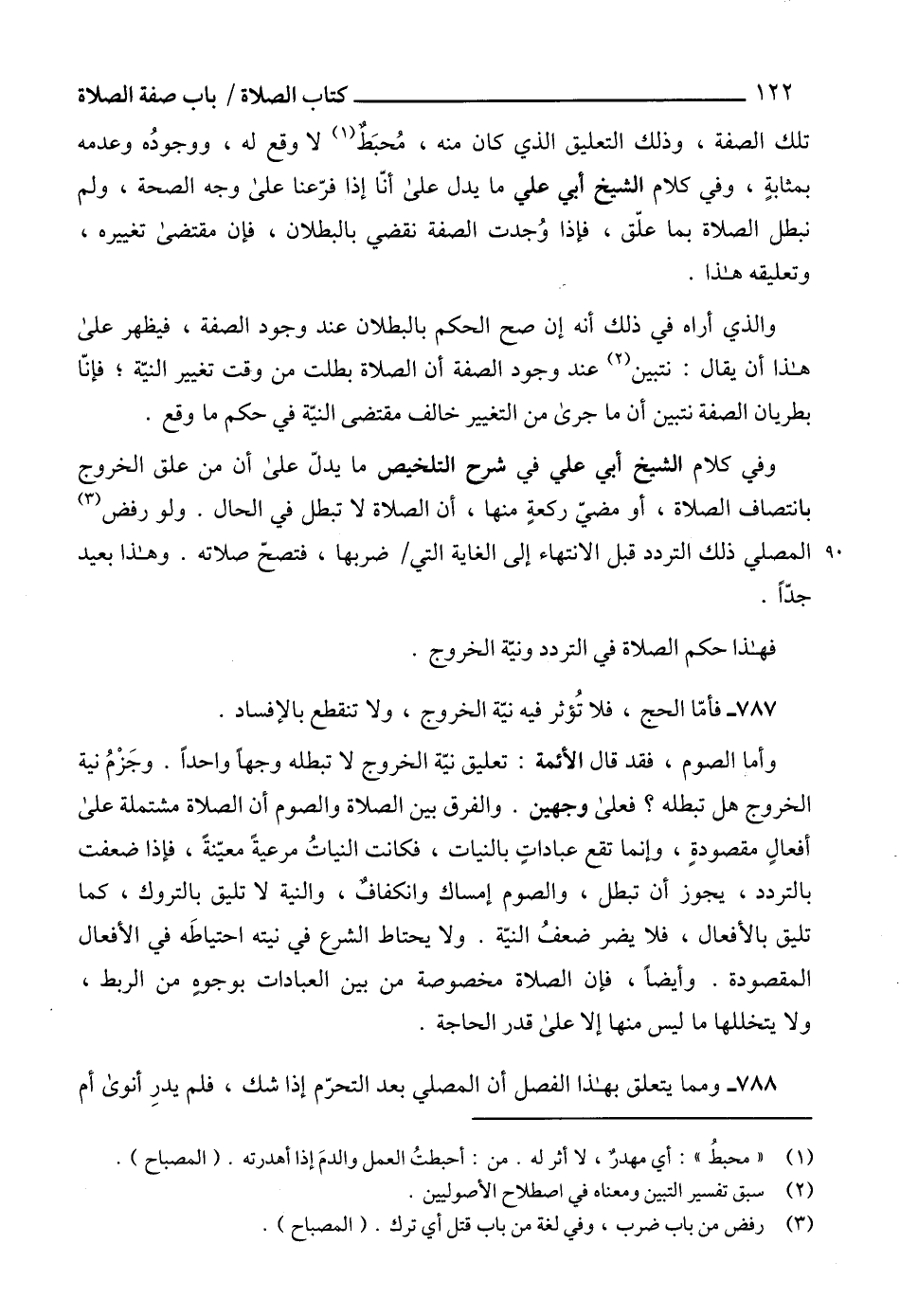 وفي كلام الشيخ أبي علي في شرح التلخيص ما يدلّ على أن من علق الخروج بانتصاف الصلاة، أو مضيّ ركعةٍ منها، أن الصلاة لا تبطل في الحال. ولو رفض (¬3) المصلي ذلك التردد قبل الانتهاء إلى الغاية التي ضربها، فتصحّ صلاته. وهذا بعيد جداً.