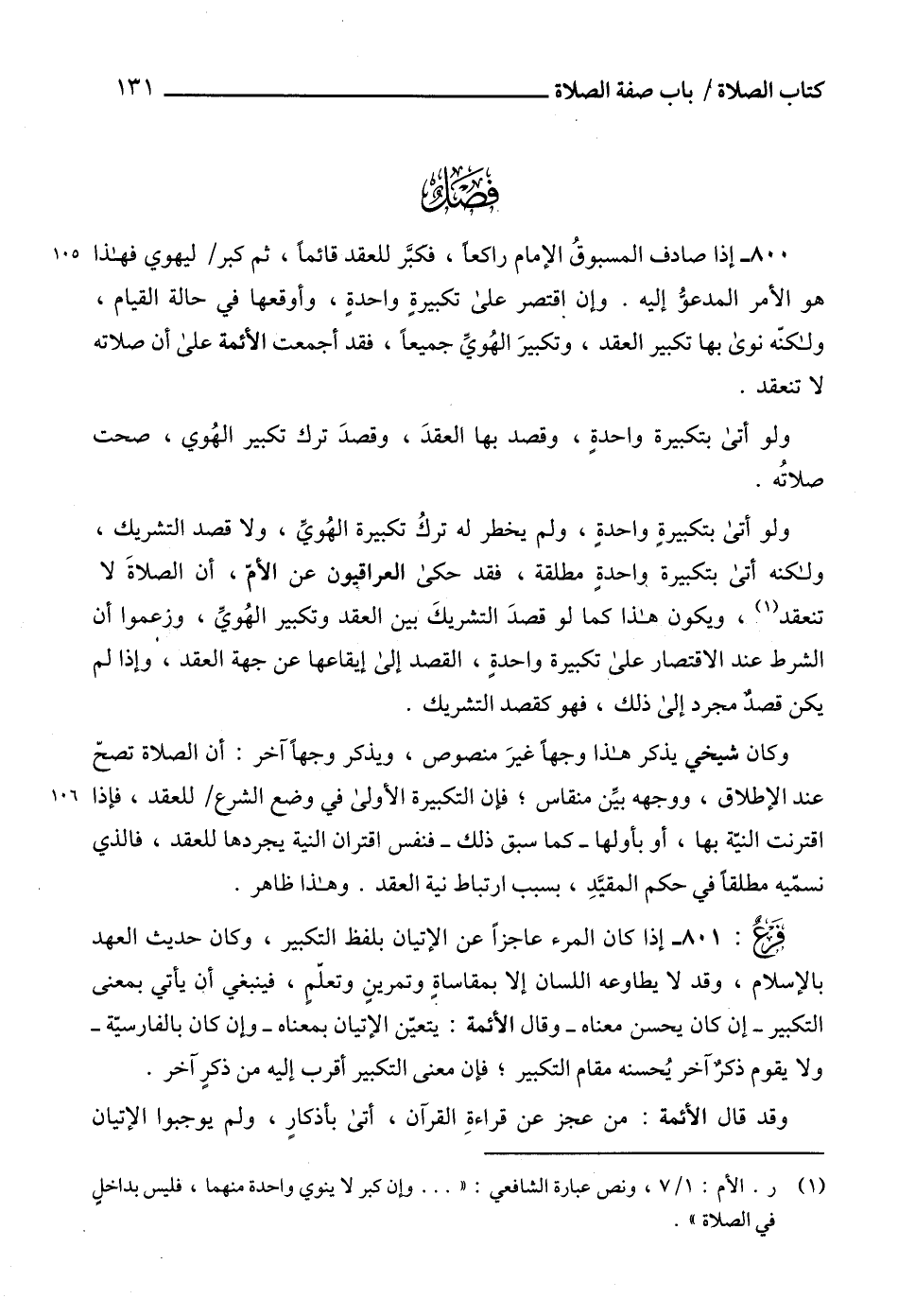 (¬1) ر. الأم: 1/ 7، ونص عبارة الشافعي: " ... وإن كبر لا ينوي واحدة منهما، فليس بداخلٍ في الصلاة".