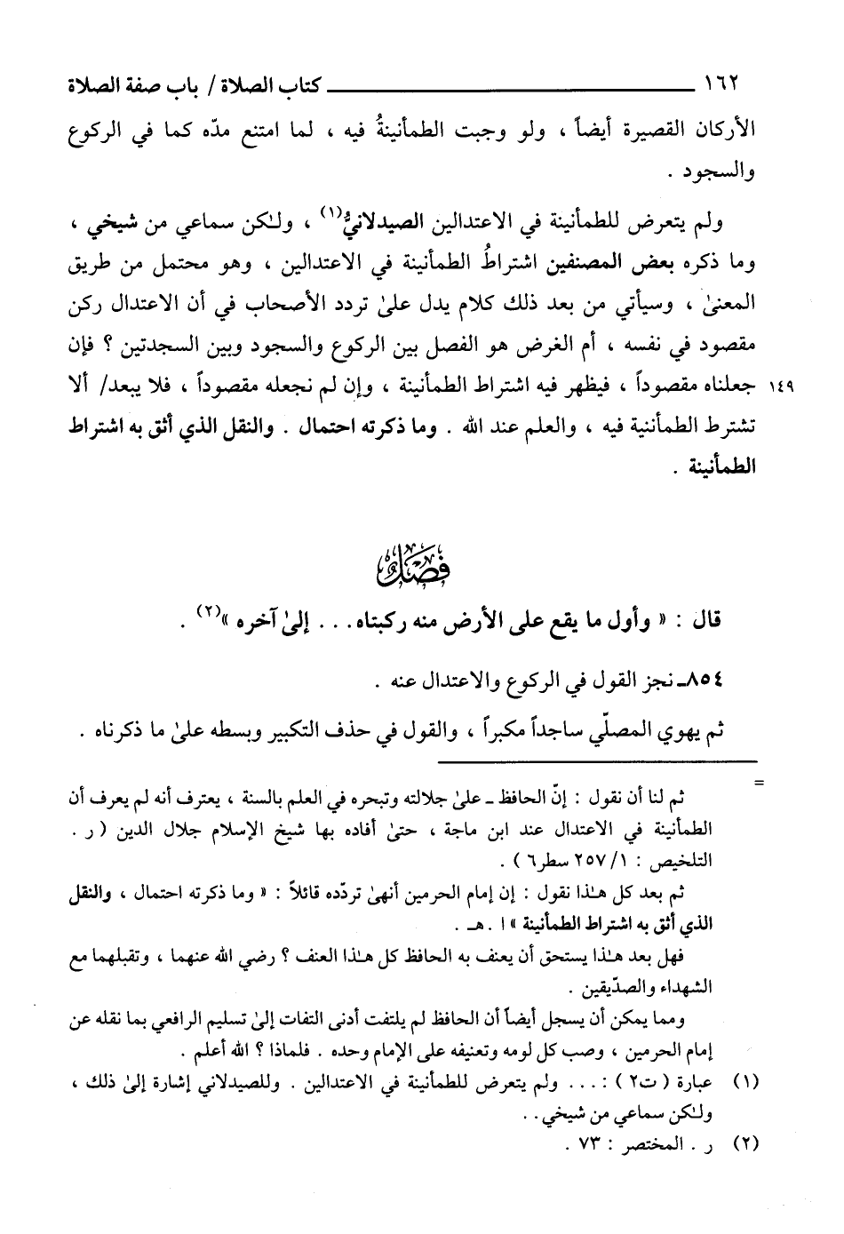 (¬1) عبارة (ت 2): ... ولم يتعرض للطمأنينة في الاعتدالين. وللصيدلاني إشارة إلى ذلك، ولكن سماعي من شيخي ..