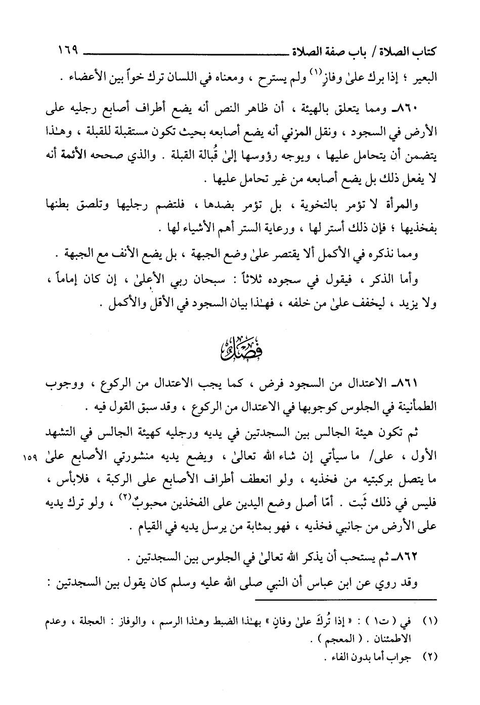 861 - الاعتدال من السجود فرض، كما يجب الاعتدال من الركوع، ووجوب الطمأنينة في الجلوس كوجوبها في الاعتدال من الركوع، وقد سبق القول فيه.