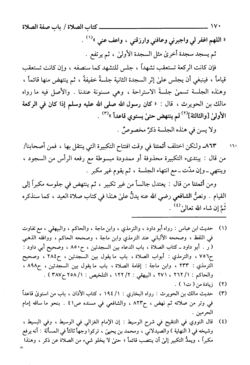(¬3) حديث مالك بن الحويرث: رواه البخاري: 1/ 194، كتاب الأذان، باب من استوى قاعداً في وتر من صلاته ثم نهض، ح 823، والشافعي في مسنده ص 41. بنحو ما ساقه إمام الحرمين.