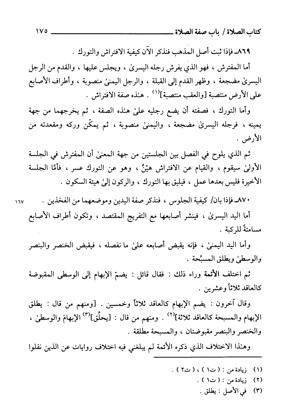 869 - فإذا ثبت أصل المذهب فنذكر الآن كيفية الافتراش والتورك.