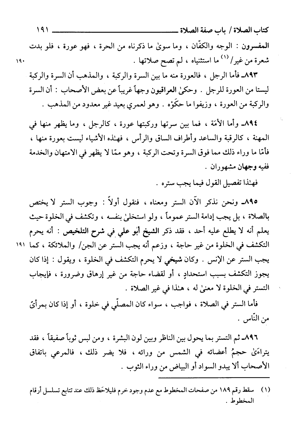 (¬1) سقط رقم 189 من صفحات المخطوط مع عدم وجود خرم فليلاحَظ ذلك عند تتابع تسلسل أرقام المخطوط.