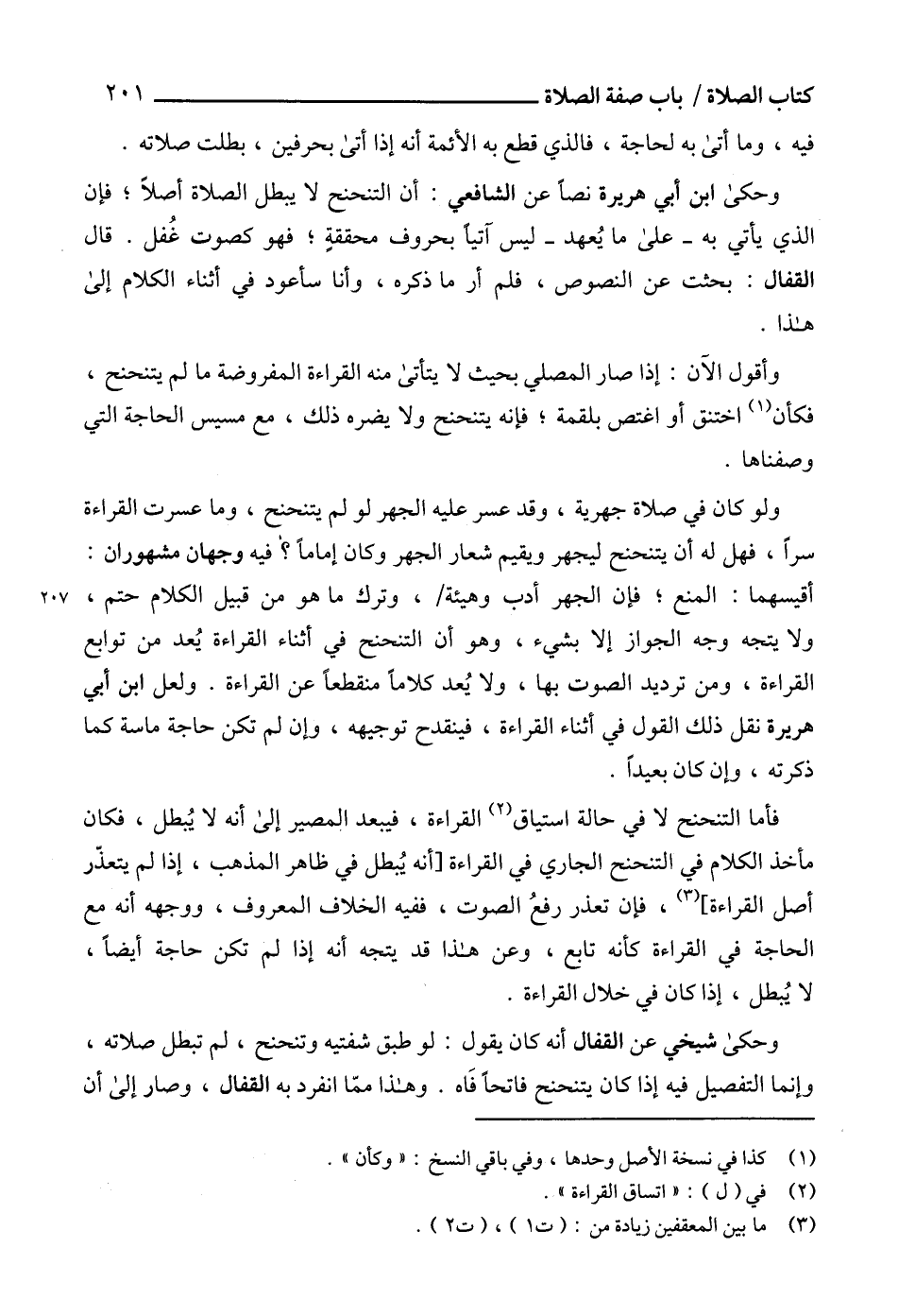 وحكى ابن أبي هريرة نصاً عن الشافعي: أن التنحنح لا يبطل الصلاة أصلاً؛ فإن الذي يأتي به -على ما يُعهد- ليس آتيا بحروف محققةٍ؛ فهو كصوت غُفل. قال القفال: بحثت عن النصوص، فلم أر ما ذكره، وأنا سأعود في أثناء الكلام إلى هذا.