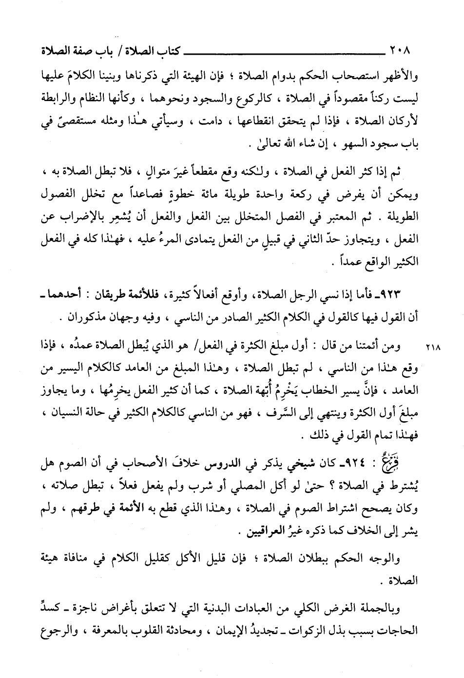 924 - كان شيخي يذكر في الدروس خلافَ الأصحاب في أن الصوم هل يُشترط في الصلاة؟ حتى لو أكل المصلي أو شرب ولم يفعل فعلاً، تبطل صلاته، وكان يصحح اشتراط الصوم في الصلاة، وهذا الذي قطع به الأئمة في طرقهم، ولم يشر إلى الخلاف كما ذكره غيرُ العراقيين.