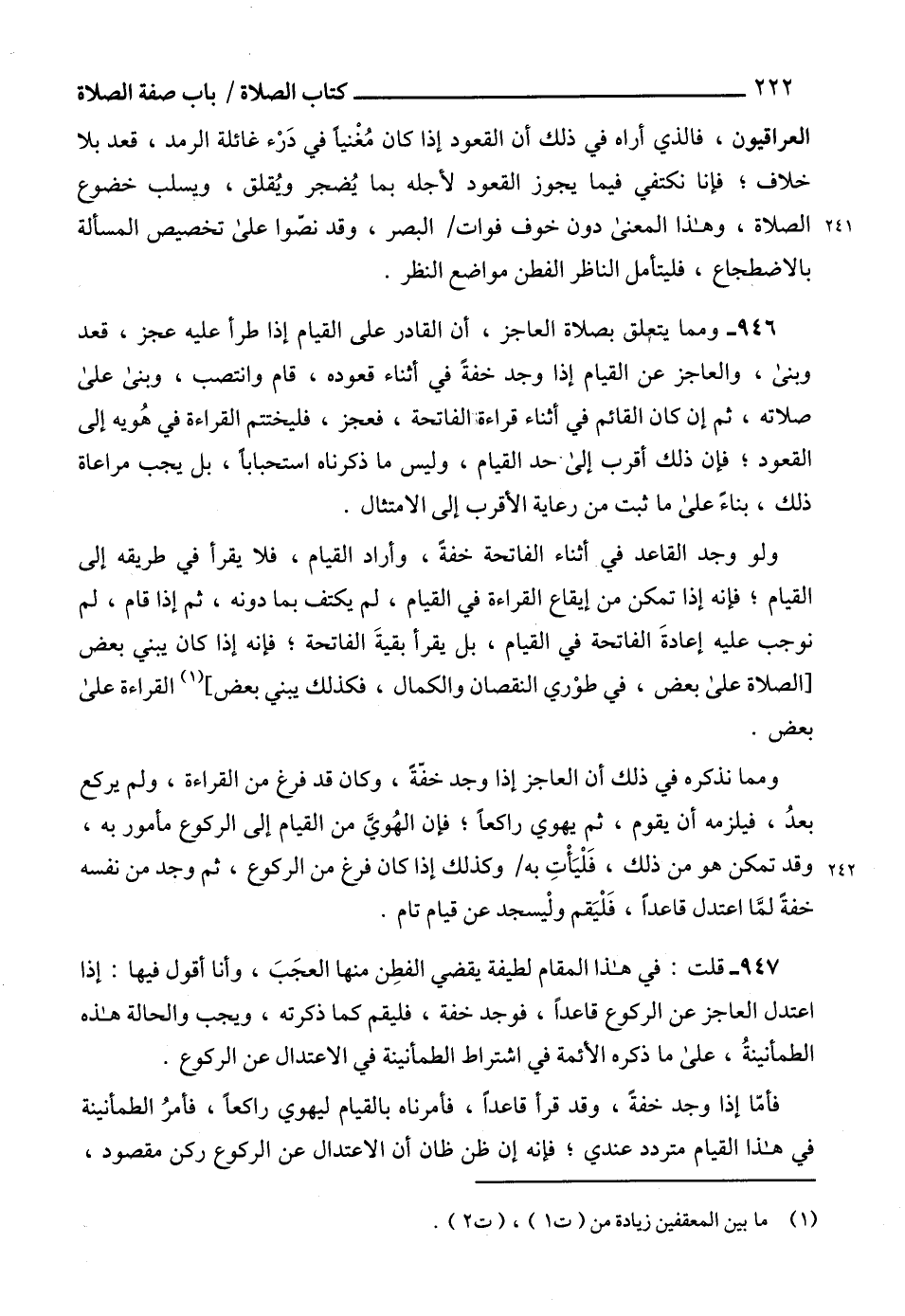 947 - قلت: في هذا المقام لطيفة يقضي الفطِن منها العجَبَ، وأنا أقول فيها: إذا اعتدل العاجز عن الركوع قاعداً، فوجد خفة، فليقم كما ذكرته، ويجب والحالة هذه الطمأنينةُ، على ما ذكره الأئمة في اشتراط الطمأنينة في الاعتدال عن الركوع.