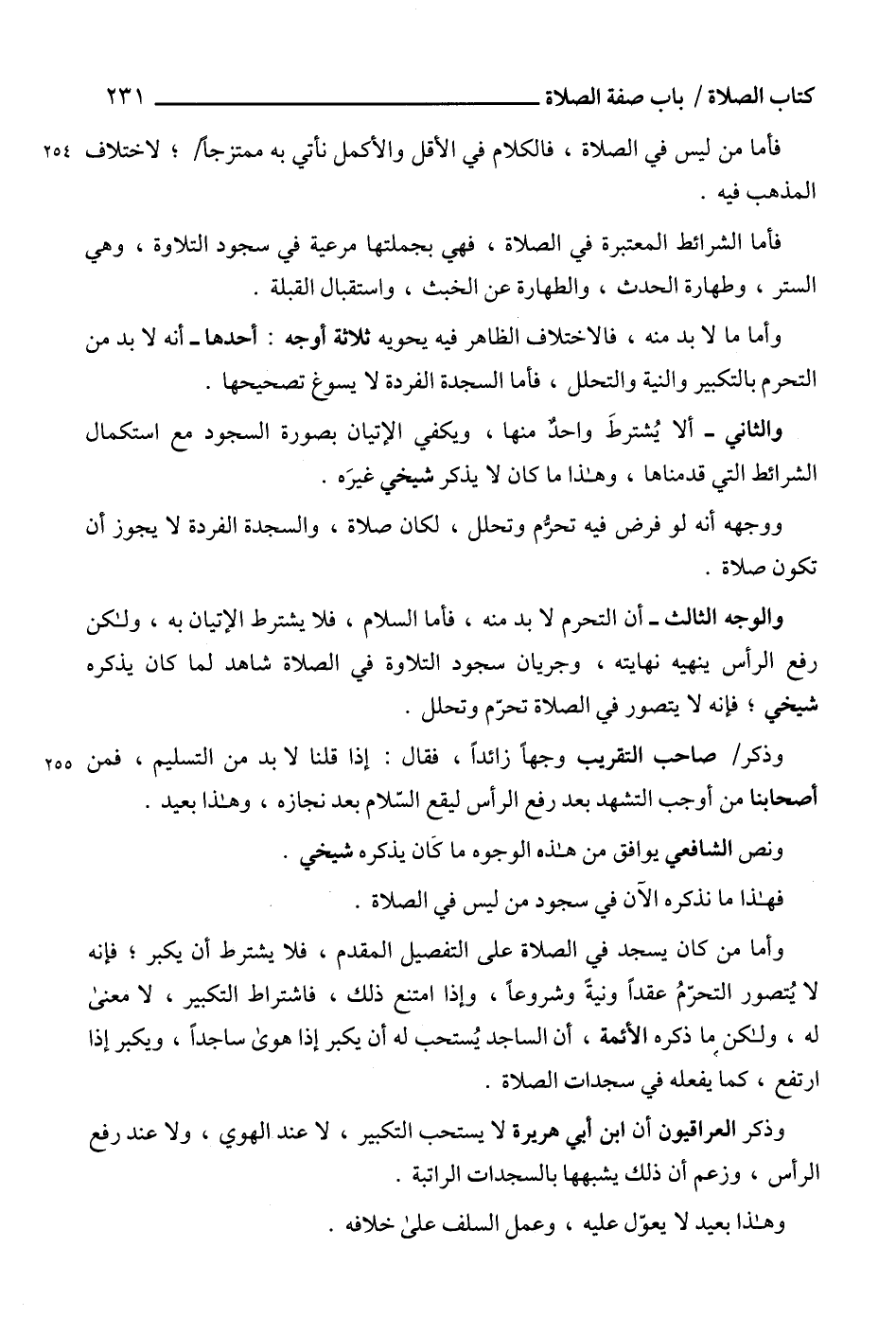 وأما ما لا بد منه، فالاختلاف الظاهر فيه يحويه ثلاثة أوجه: أحدها - أنه لا بد من التحرم بالتكبير والنية والتحلل، فأما السجدة الفردة لا يسوغ تصحيحها.