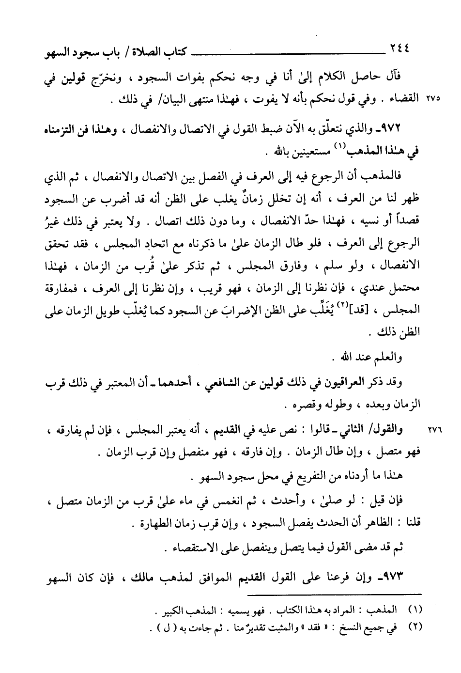 973 - وإن فرعنا على القول القديم الموافق لمذهب مالك، فإن كان السهو