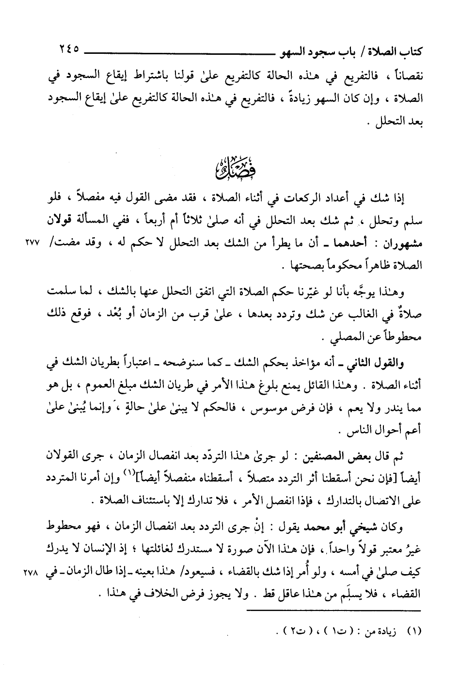 وكان شيخي أبو محمد يقول: إنْ جرى التردد بعد انفصال الزمان، فهو محطوط غيرُ معتبر قولاً واحداً، فإن هذا الآن صورة لا مستدرك لغائلتها؛ إذ الإنسان لا يدرك كيف صلى في أمسه، ولو أُمر إذا شك بالقضاء، فسيعود هذا بعينه -إذا طال الزمان- في القضاء، فلا يسلَم من هذا عاقل قط. ولا يجوز فرض الخلاف في هذا.
