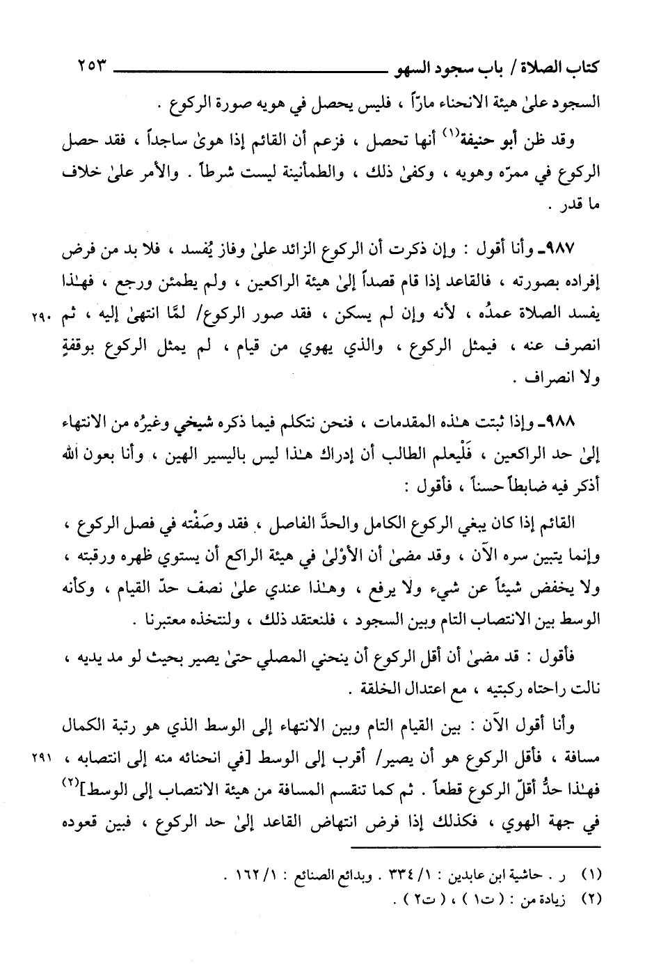 988 - وإذا ثبتت هذه المقدمات، فنحن نتكلم فيما ذكره شيخي وغيرُه من الانتهاء إلى حد الراكعين، فَلْيعلم الطالب أن إدراك هذا ليس باليسير الهين، وأنا بعون الله أذكر فيه ضابطاً حسناً، فأقول: