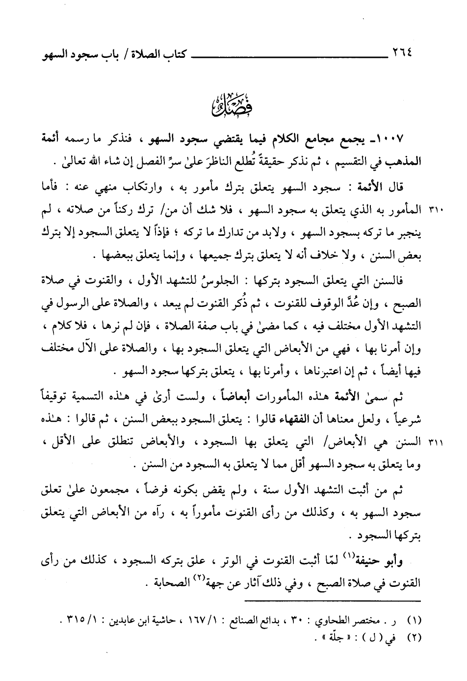 1007 - يجمع مجامع الكلام فيما يقتضي سجود السهو، فنذكر ما رسمه أئمة المذهب في التقسيم، ثم نذكر حقيقةً تُطلع الناظرَ على سرّ الفصل إن شاء الله تعالى.