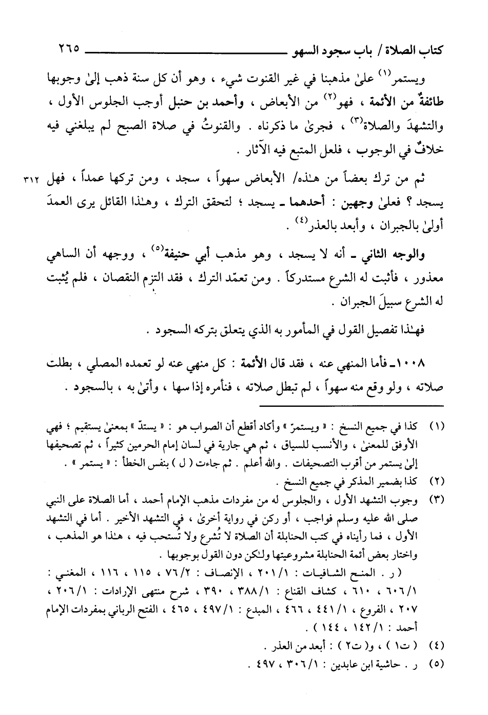 (ر. المنح الشافيات: 1/ 201، الإنصاف: 2/ 76، 115، 116، المغني: 1/ 606، 610، كشاف القناع: 1/ 388، 390، شرح منتهى الإرادات: 1/ 206، 257، الفروع، 1/ 441، 466، المبدع: 1/ 497، 465، الفتح الرباني بمفردات الإمام أحمد: 1/ 142، 144).