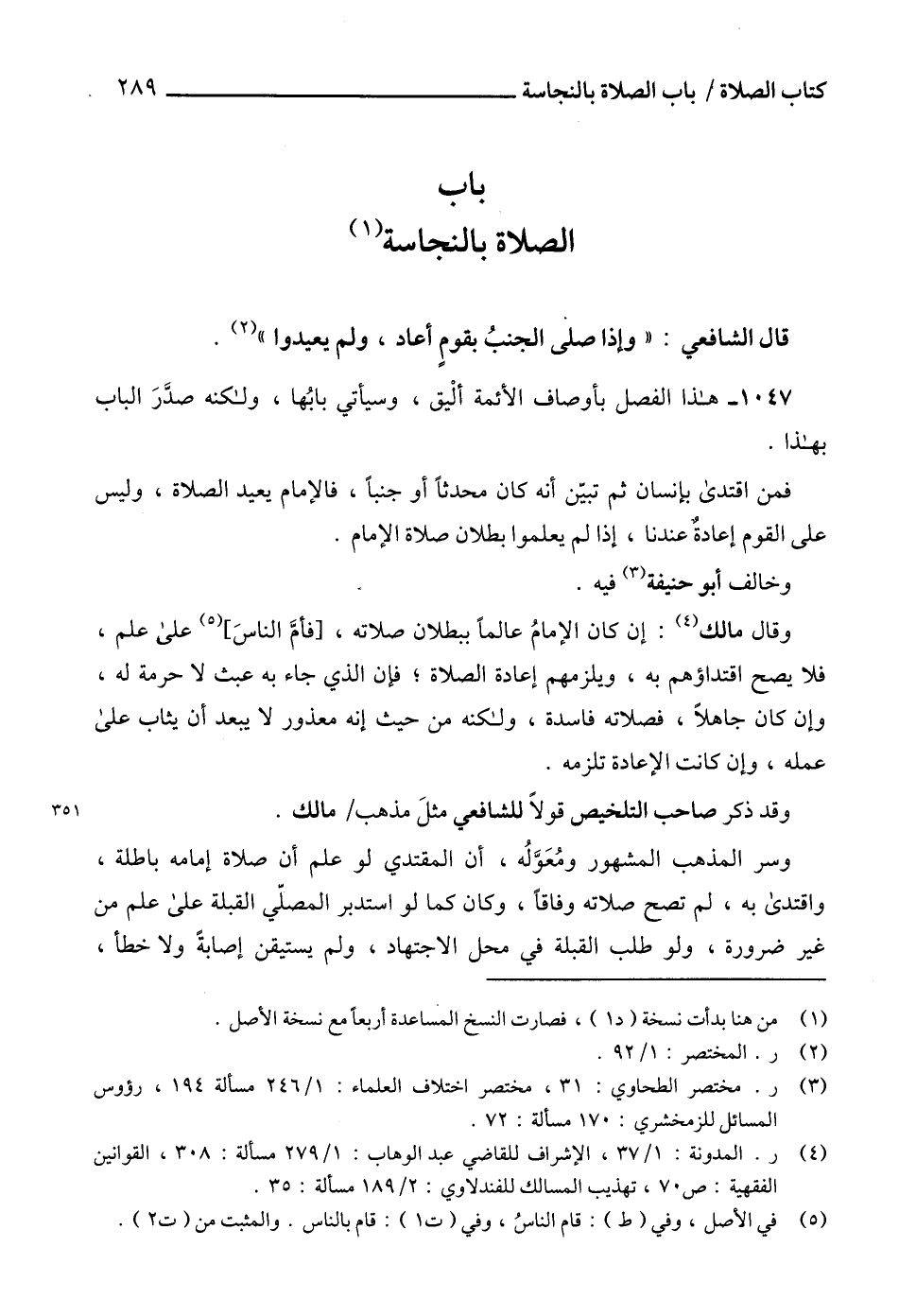 (¬4) ر. المدونة: 1/ 37، الإشراف للقاضي عبد الوهاب: 1/ 279 مسألة: 308، القوانين الفقهية: ص 70، تهذيب المسالك للفندلاوي: 2/ 189 مسألة: 35.